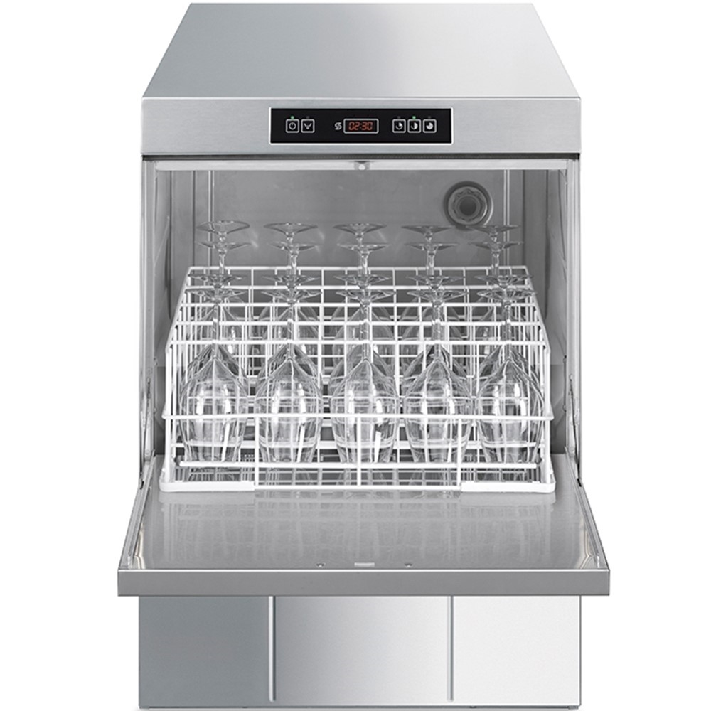 Машина посудомоечная с фронтальной загрузкой SMEG SPD505S используется на предприятиях общественного питания и торговли для мойки столовых приборов, тарелок, стаканов, чашек и другой посуды.