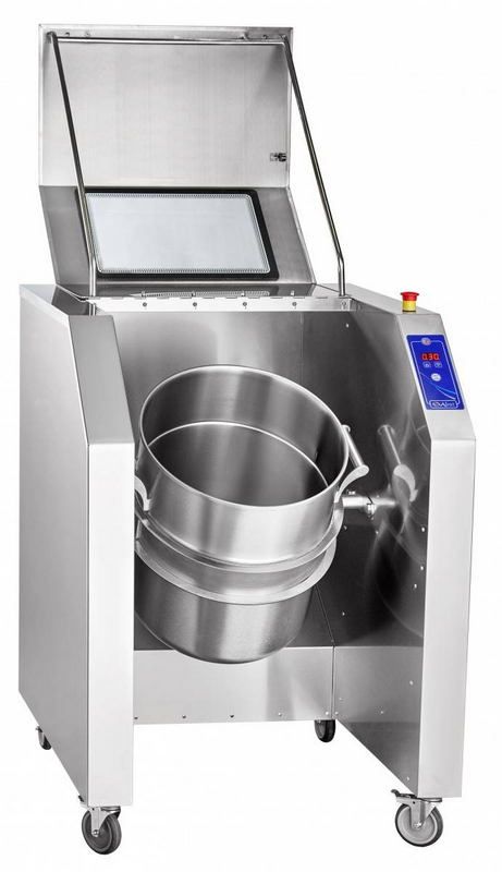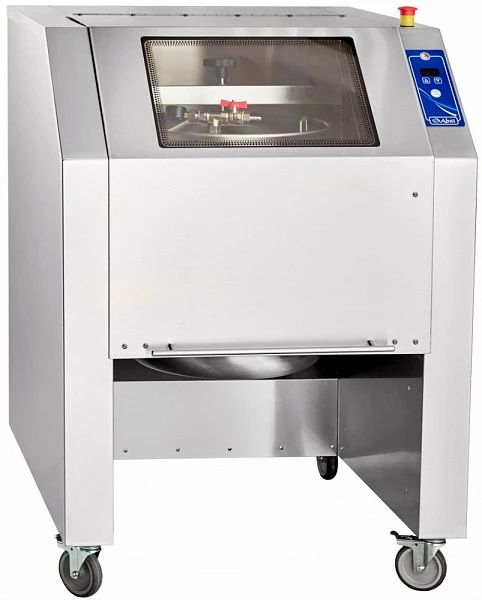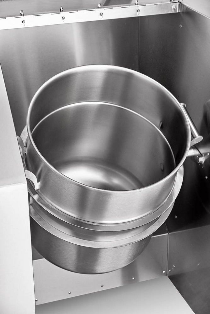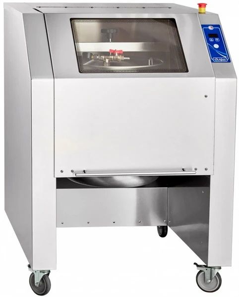 Управляется агрегат при помощи электромеханической панели. Предусмотрена кнопка аварийного отключения. На корпусе установлены колесные опоры для транспортировки. Каркас и детали произведены из нержавеющей стали.