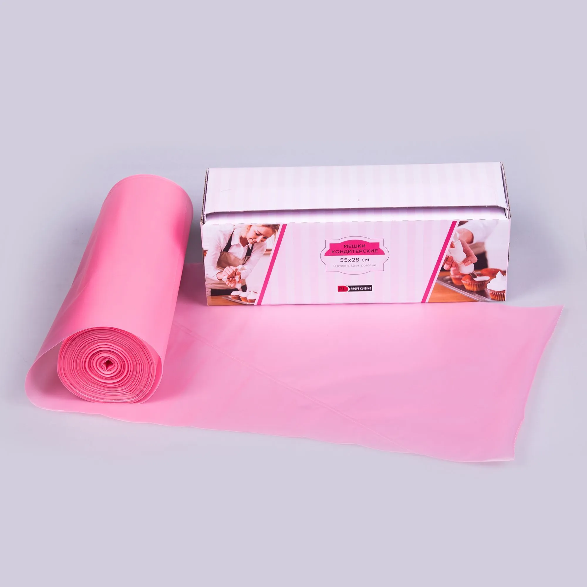 Мешок кондитерский 3-сл в рулоне 53 см розовый, 80 мкм, особо прочные швы, 100 шт/рул, P.L. Proff Cu