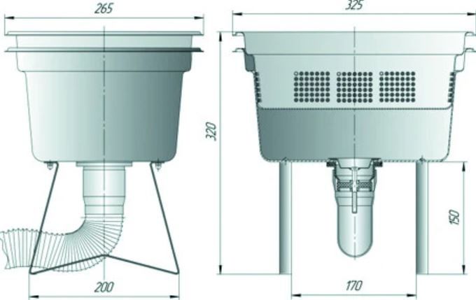 Мезгосборник Торгмаш, Пермь К-200.25.000 для (К-150, К-300, К-200)предназначен для сбора и временного хранения отходов от чистки картофеля. Изделие совместимо с картофелечистками моделей К-150, К-300, К-200, а также прочих картофелечисток с абразивной системой очистки со сливным отверстием, установленным на уровне не ниже 320 от пола. Конструктивно мезгосборник состоит из корпуса на опорах, сливного устройства, внутренней емкости с отверстиями.