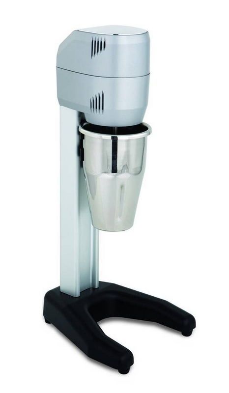 Миксер для молочных коктейлей ApachAMX1оснащен компактным односкоростным мотором с мощностью 15 000 об/мин. Для защиты моторной части от перегревания в обшивке предусмотрены вентиляционные отверстия, внутри – вентилятор для принудительного охлаждения. Миксер используют для приготовления коктейлей, йогуртов на основе молока сливок и разных сиропов. Данная модель оснащена микровыключателем, которая срабатывает при неправильной установке емкости или ее удалении. Потребление электроэнергии составляет 0,14 кВт.
