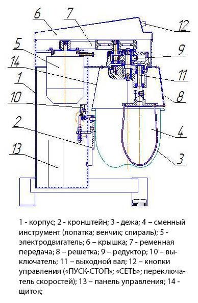 - дежа и набор насадок (венчик, лопатка, крюк) из полированной пищевой стали;