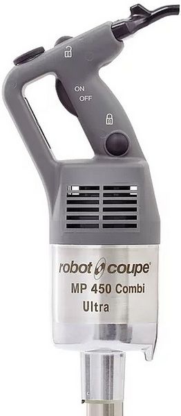 Миксер ручной Robot CoupeMP 450 FW Ultraпредназначен для взбивания яиц, сливок, молока, суфле, кремов, муссов, приготовления нежного пюре из отварных овощей, перемешивания ингредиентов легких блюд. Он относится к профессиональному кухонному оборудованию и используется в крупных заведениях общепита. Специально спроектирован для интенсивного использования, в том числе для работы в сфере кейтеринга. MP 450 FW Ultra может перемешивать, взбивать, делать картофельное пюре, замешивать жидкое тесто и готовить эмульсии до 100 л за считаные минуты.
