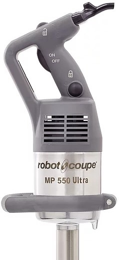 Ручной миксер Robot-coupe MP 550 Ultra 34820LH используется для приготовления блюд в больших объемах: взбивания кремов, яиц и сливок, приготовления соусов, пюре и десертов, замешивания жидкого теста, смешивания ингредиентов. Модель подходит для интенсивного применения на больших предприятиях общепита и крупном пищевом производстве.