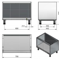 Подходит для индукционной плиты КИП-25Н. Ножки регулируются по высоте. Задняя стенка выполнена из оцинкованной стали, остальные детали – из нержавеющей стали.