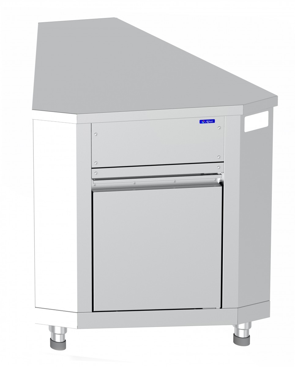 Модуль имеет вид внутреннего сектора, снабжен регулируемыми ножками с цокольной планкой. Небольшая столешница подходит для размещения посуды и столовых приборов. Заднее пространство выполнено в виде шкафчика для хранения посуды и инвентаря с распашной дверцей. Модуль изготовлен из нержавеющей стали. Передняя и задняя стенки корпуса имеют 5 вариантов исполнения.