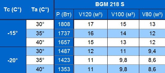 Низкотемпературный моноблок BGM 218 S с установкой настенного типа предназначен для поддержания заданной температуры в теплоизолированной холодильной камере объемом от 8,6 до 17 куб.м. Подходящий для этой модели объем рассчитывается в зависимости от толщины панелей камеры (80 или 100 мм), температуры окружающей среды (от +30 до +40°C) и необходимой температуры охлаждения в камере (от -20 до -15°C). Корпус моноблока изготовлен из оцинкованной стали толщиной 0,9 мм с полимерным покрытием (цвет белый, RAL9016). Агрегат заправлен безопасным, озоносберегающим хладагентом R404A (доза заправки 1,4 л). В комплект входят реле высокого давления, автоматические выключатели, ТЭНы оттайки.