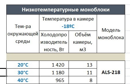 | Температурный диапазон | от -16 до -18 °C |