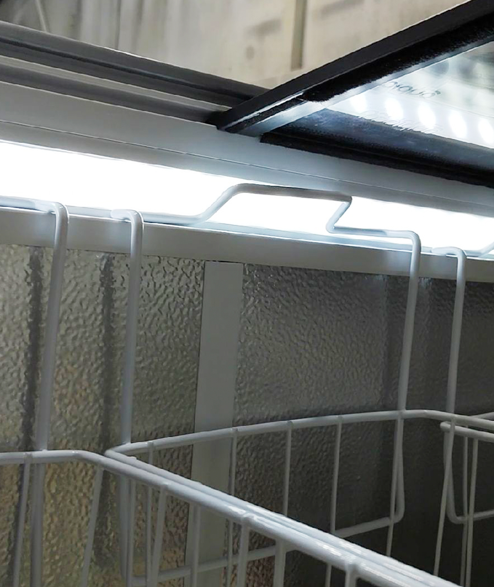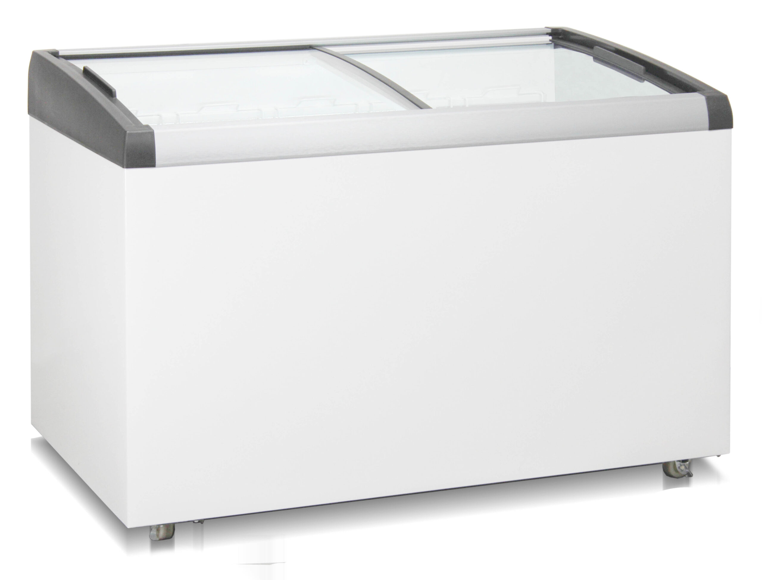 Морозильный ларь Бирюса CF41 с гнутыми раздвижными стеклами. Особенности: