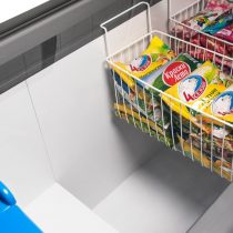 Фростор Геллар FG 275 E – одна из самых маленьких моделей в серии морозильных ларей с гнутым стеклом от российского производителя “Фростор”. Данная серия отличается элегантным современным дизайном и наилучшим обзором продукции, особенно в сочетании со светодиодной подсветкой. Благодаря своим компактным размерам ларь легко впишется даже в самое ограниченно торговое пространство, что делает его привлекательным вариантом для мини-маркетов и магазинов формата “у дома”. В стандартную комплектацию морозильного ларя Frostor Gellar FG 275 E входят три корзины, с помощью которых вы сможете раздельно хранить и демонстрировать продукты разного вида.