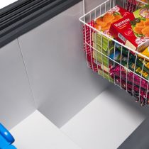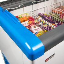 Морозильный ларь среднего объема Фростор Геллар FG 400 C – это не только надежное хранение замороженной продукции, но и повышение ее привлекательности для потенциального покупателя. Обе стеклянные крышки легко раздвигаются, предоставляя доступ к полуфабрикатам и мороженому. Продукция может быть выложена как в камере, так и в четырех корзинках, чтобы раделить товары по разновидностям. Корона крышки изготавливается в трех возможных расцветках, из которых вы можете подобрать наиболее подходящую к цветовому решению вашего магазина. Класс энергоэффективности “А” означает низкое энергопотребление морозильного ларя Frostor Gellar FG 400 C.