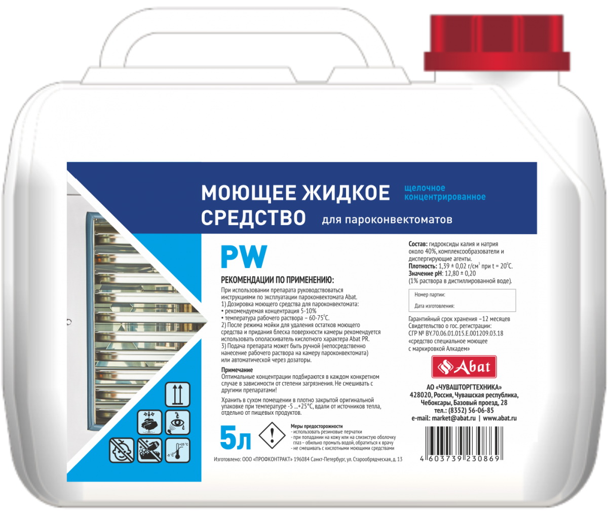 Концентрированное жидкое щелочное средство для очистки поверхности камеры пароконвектомата.