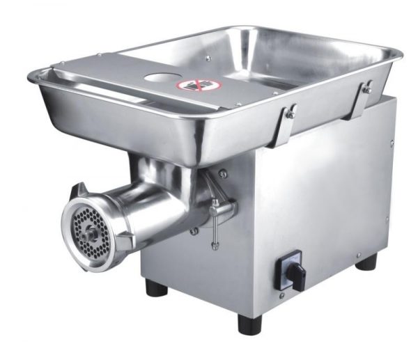 В комплектацию мясорубки входит пластиковый толкатель и две решетки с ячейками диаметром 0,6 мм и 0,8 мм. Потребляемая мощность составляет 1,5 кВт. Оборудование работает от электросети 220 В. Загрузочное отверстие имеет размеры 93х115 мм. Скорость вращения двигателя – 900 об/мин. Вес мясорубки – 25 кг.