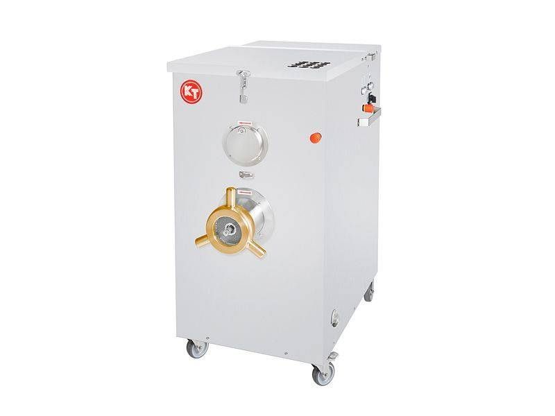 Koneteollisuus (KT) LM-130/A 11+1,1кВт с педальюпредставляет собой электрическую мясорубку. Модель предназначена для измельчения мяса разной степени жесткости и рыбы в фарш. Аппарат отлично подходит для применения в сфере торговли, пищевого производства, общественного питания. В конструкции предусмотрено два двигателя (для перемешивания и измельчения). Управление осуществляется при помощи педали. Корпус и шнек мясорубки выполнены из нержавеющей стали. Рукав мясорубки из чугуна. В верхней части мясорубки предусмотрены отверстия для контроля качества смешивания, а также добавления дополнительных ингредиентов.