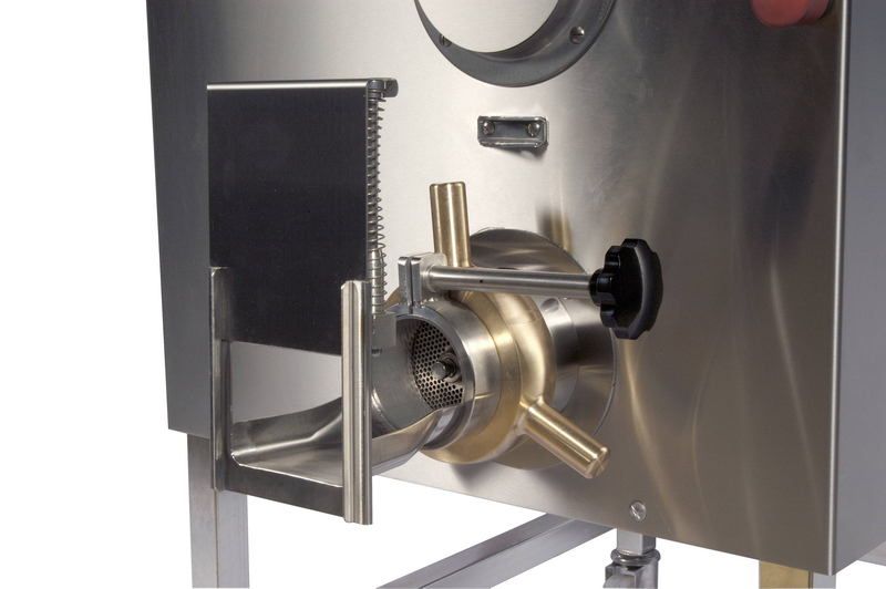 Koneteollisuus (KT) LM-130/A Unger чугунпредставляет собой профессиональную мясорубку. Модель прекрасно подходит для оснащения пунктов общественного питания, торговых точек, пищевых производств. Оборудование рассчитано на применение в условиях повышенных нагрузок. Корпус и бункер для мяса из нержавеющей стали. Горловина изделия произведена из чугуна, шнековая система выполнена из нержавеющей стали. В конструкции предусмотрено два независимых двигателя: для измельчения (мощностью 7,5 кВт) и перемешивания (1,1 кВт).