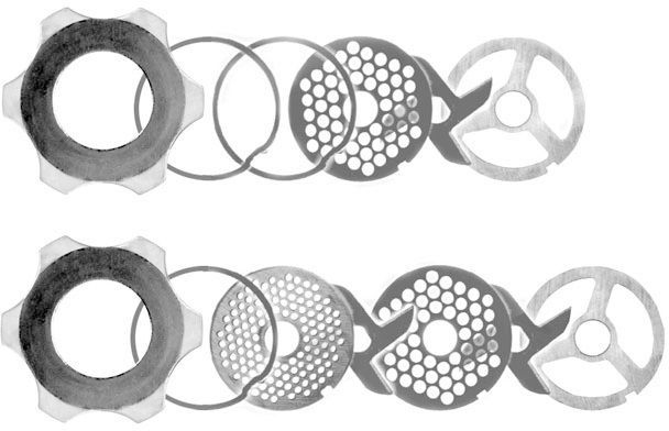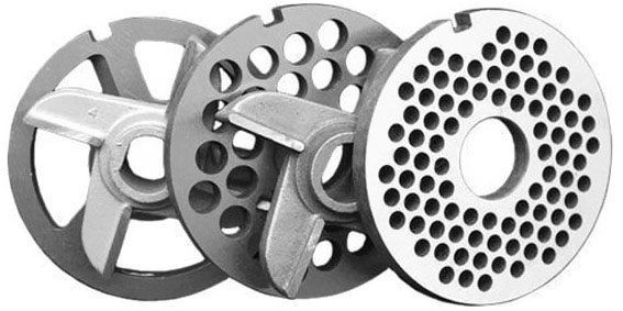 - бесшумный червячный редуктор, позволяющий перерабатывать мясо с большим количеством жил и хрящей;