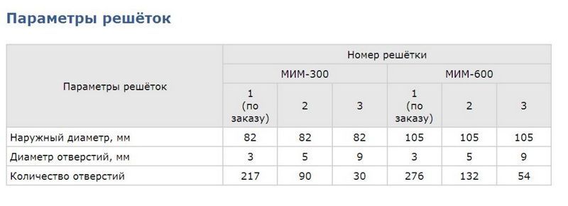 • количество отверстий решеток – 132/54 при диаметре 5/9 мм;