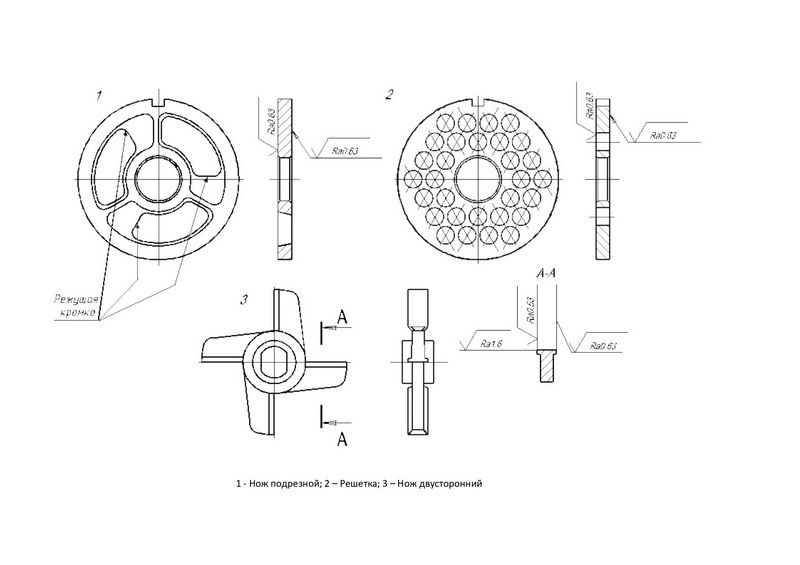 - мелющая группа: набор ножей (двусторонние и подрезной), решеток (2 шт.) для системы тонкого помола Унгер;