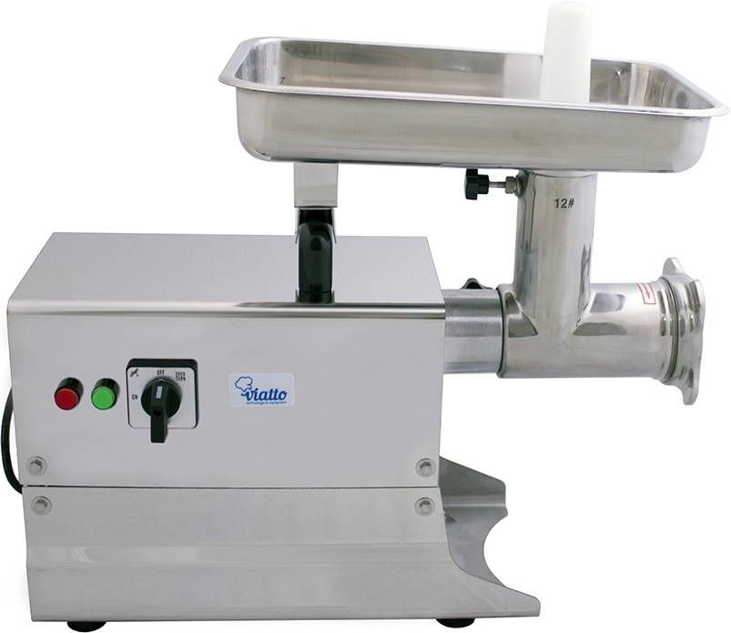 Мясорубка ViattoHFM-12– электрический измельчитель мяса без костей, рыбы, субпродуктов, сухофруктов в сыром или приготовленном виде. Применение: небольшие пищевые производства, различные предприятия питания, кулинарные цеха супермаркетов.