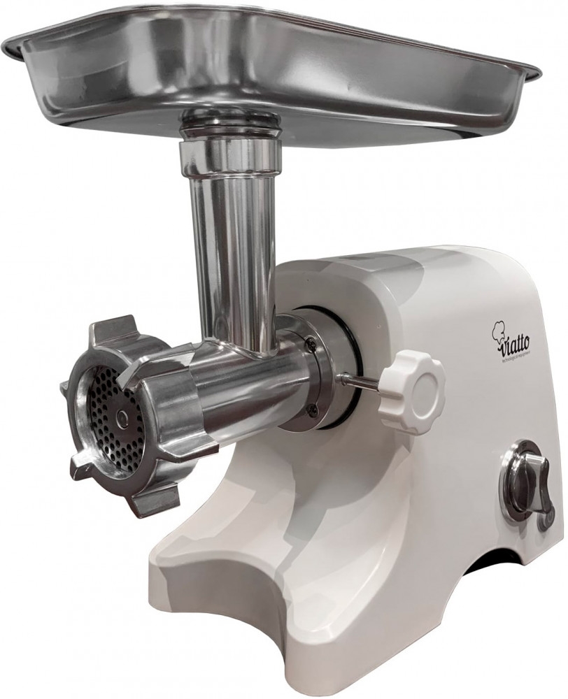 Viatto VA-MG600W представляет собой электрическую мясорубку, предназначенную для перемалывания рыбы, мяса, а также вторичного измельчения котлетной массы. Производительность аппарата составляет до 130 кг в час. Мясорубка подходит как для домашнего, так и для профессионального применения. Корпус изделия выполнен из алюминия, режущий механизм произведен из нержавеющей стали.
