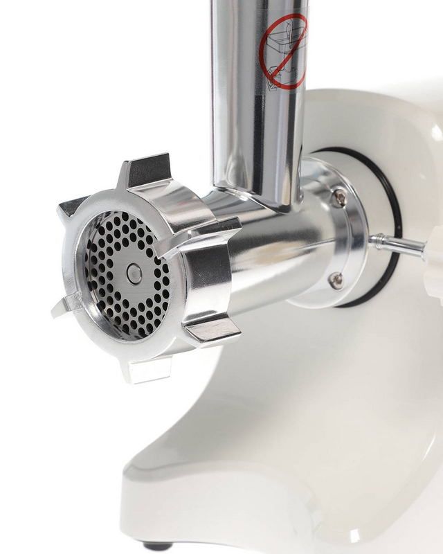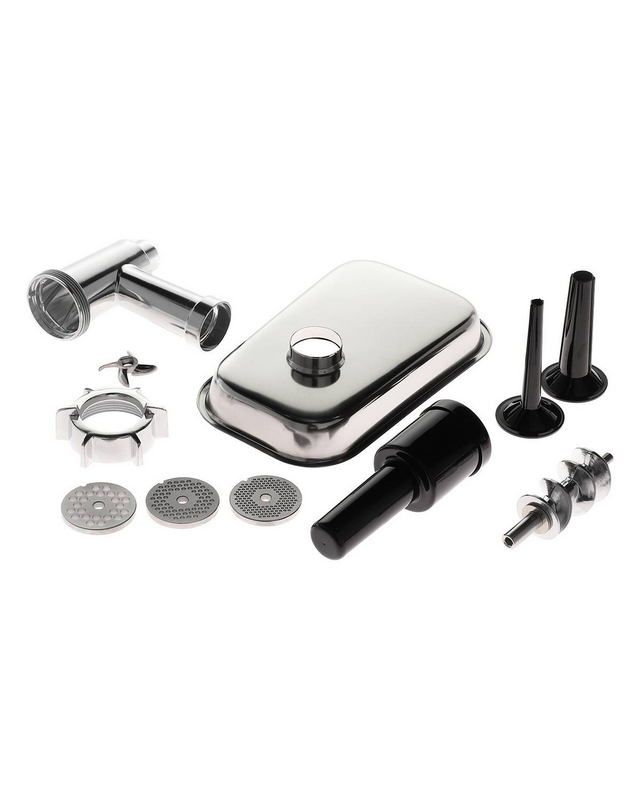 | Комплект поставки | Односторонний нож, 3 решётки из нержавеющей стали (3, 4.5 и 8 мм в диаметре) и 2 насадки для колбасок |