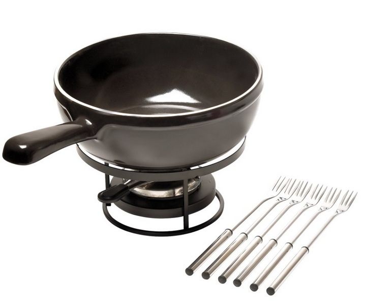 Набор для фондю Emile Henry 2,5 л, H 90 мм, D 220 мм черный (кастрюля, подставка, подставка для топлива, 6 вилок)