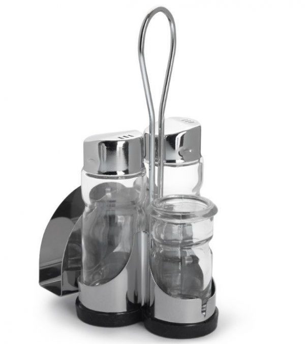 Набор для специй 3 предмета (соль, перец,зубоч) + салфетница нержавеющая сталь, замкнутый круг Luxstahl [KH-406]