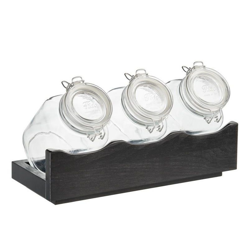 Набор ёмкостей на подставке APS 3 шт. стекло, дерево, тем.корич., H 13,5, L 43, B 17 см артикул 14965