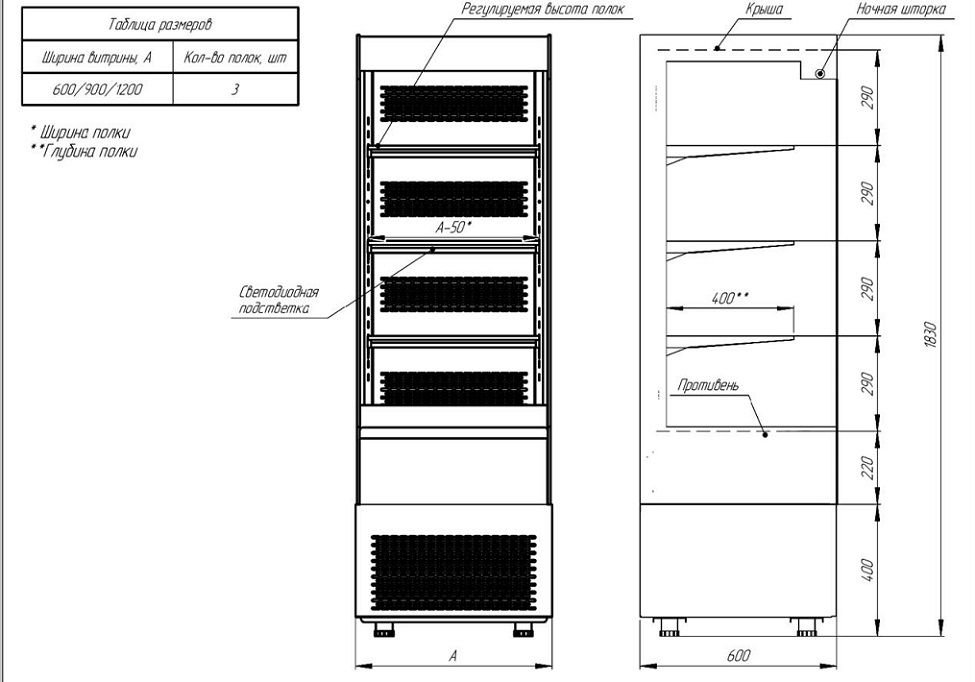| Ширина, мм | 600 |