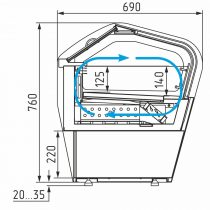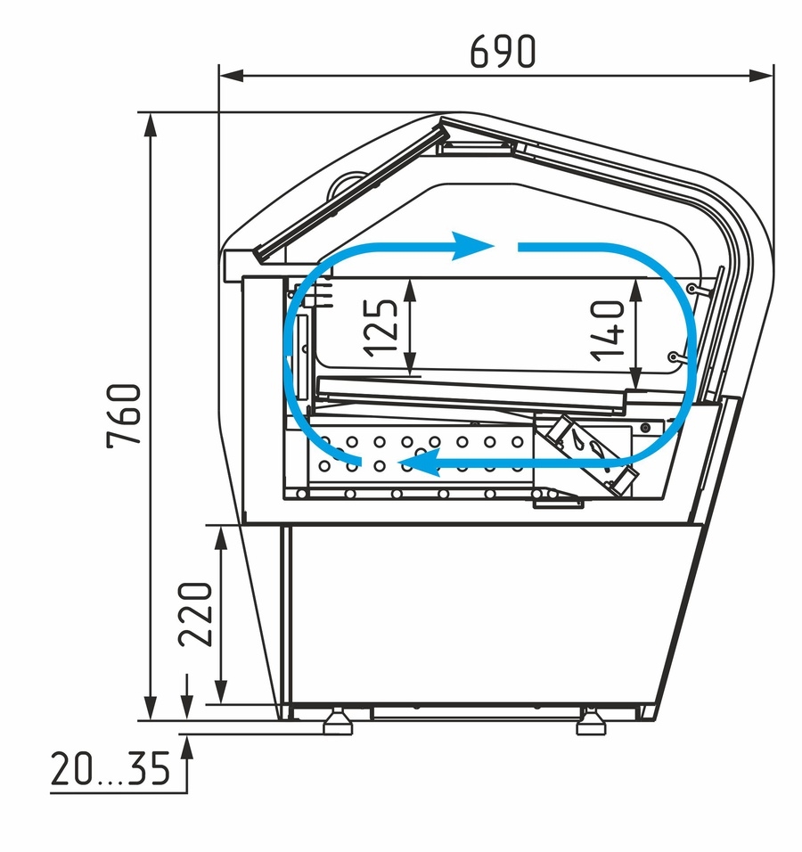- корпус витрины подходит под установку на столешницу глубиной 500 мм