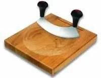 Нож для резки зелени одинарный полукруглый с бамбуковой доской 15 см, две ручки