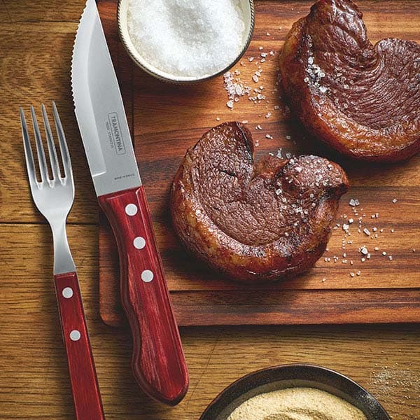 Нож для стейка Tramontina Polywood L 250/125 мм, B 10 мм, красный купить с гарантией в Москве по низкой цене с доставкой по России у официального дилера. Возможность покупки в кредит
