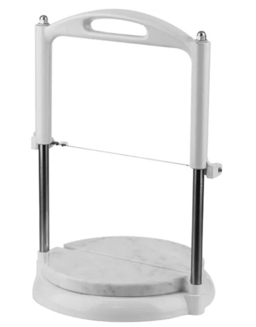 Нож для сыра Matfer D 215 мм. H 370 мм.предназначен для тонкой и точной нарезки мягких сортов. В качестве режущего элемента используется стальная струна. Ее натяжка обеспечивает высокую точность нарезки. Основа выполнена в виде пода из натурального камня.
