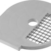 Диск имеет форму круга с угловым элементом и изготовлен из пищевой нержавеющей стали. На основании расположена решетка с крупной ячейкой для нарезания соломки или кубиков, лезвия которой также выполнены из стали.