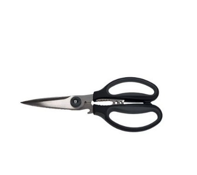 Ножницы универсальные MVQ MESSER 220 мм— лезвия имеют специальные насечки для более эффективного разрезания. Кольца эргономичные, крупные, широкие, с фиксаторами, подходят и для мужской руки, сделаны из высокотехнологичного пластика, с нескользящим слоем внутри.