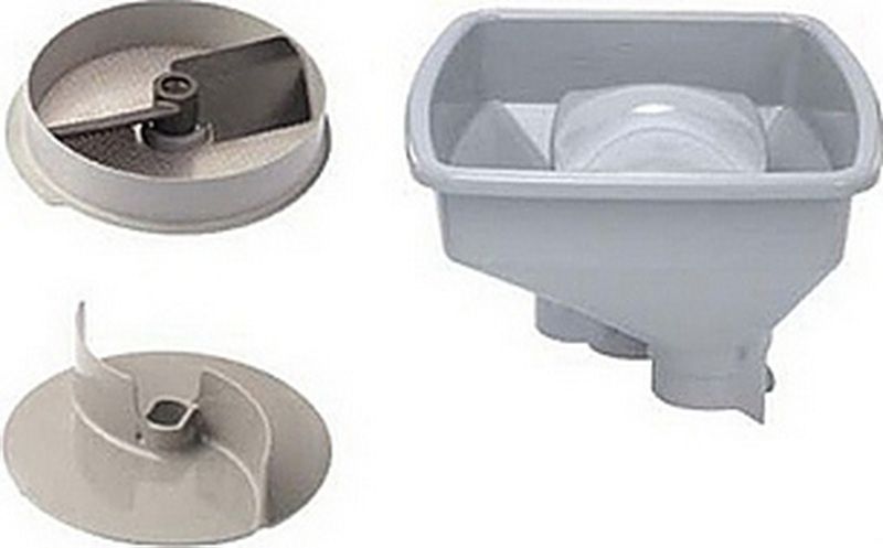 • Протирка для пюре 3 мм (загрузочная воронка для загрузки картофеля, лопасть для протирания, специальная решетка, специальный диск-сбрасыватель для пюре).