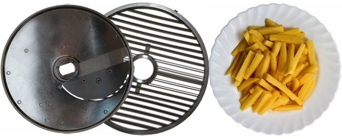 - Производительность: при нарезке сырых овощей: до 350 кг/ч, при шинковке капусты: до 220 кг/ч, при измельчении моркови по-корейски: до 60 кг/ч, при протирке картофеля: до 600 кг/ч;