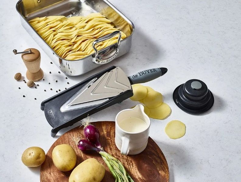 Овощерезка-мандолина Кобра с толкателем De Buyer 365*120 мм.предназначена для нарезки и чистки овощей, фруктов. Изделие может использоваться в сфере общественного питания, торговли, а также применяться в быту.