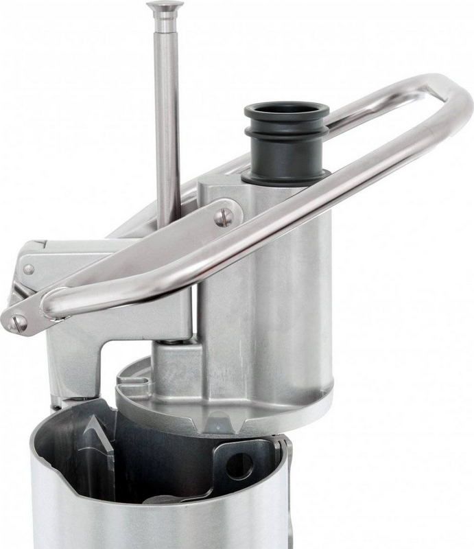 - Цилиндрическая воронка (Ø 58 мм), предназначенная для длинных или деликатных овощей (например, кабачки, огурцы, грибы), гарантирует исключительную точность нарезки;