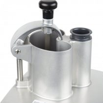 Внешне прибор представляет собой корпус прямоугольной формы со встроенным двигателем, на который установлена рабочая емкость с крышкой. Корпус имеет прямоугольные формы и выполнен из поликарбоната. В него встроен асинхронный однофазный двигатель с постоянной скоростью вращения стального вала. Рабочая емкость (чаша) также имеет форму, близкую к прямоугольной, изготовлена из нержавеющей стали и снабжена боковым выходом нарезанных продуктов. Диски для нарезки крепятся на валу в чаше. Чаша закрывается откидной крышкой, которая снимается при необходимости очистки. В крышке предусмотрены два отверстия для загрузки сырья. Большая D-образная воронка для целых овощей или больших кусков имеет рычажный толкатель. Малая цилиндрическая воронка с ручным толкателем рассчитана на тонкие и нежные продукты. Все элементы крышки, кроме ручного толкателя, изготовлены из пищевой нержавеющей стали. Прибор управляется кнопками пуска и стопа на передней стороне корпуса. Для устойчивости он снабжен прорезиненными ножками.
