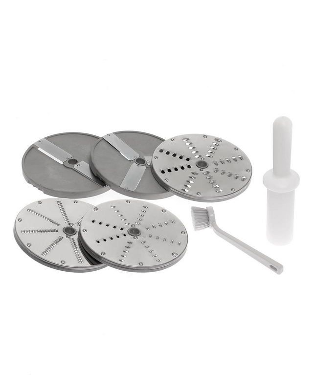 - пять видов ножей – слайсер: толщина кусочков на выходе 2 и 4 мм, терка 3, 4, 7 мм;