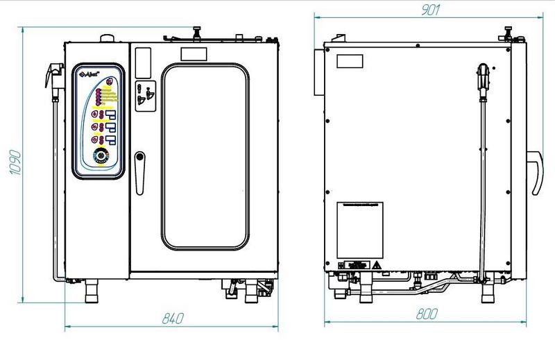 В конвектомате предусмотрено 5 режимов работы: конвекция, конвекция с паром, пар, холодный пар и разогрев. В память загружено 110 программ приготовления.