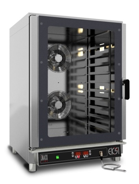 Пароконвектомат Eksi ESL 101GD – вместительное оборудование для профессиональных кухонь. Оснащен универсальными направляющими для установки гастроемкостей (гарниры, вторые блюда) и противней для приготовления разнообразной выпечки.