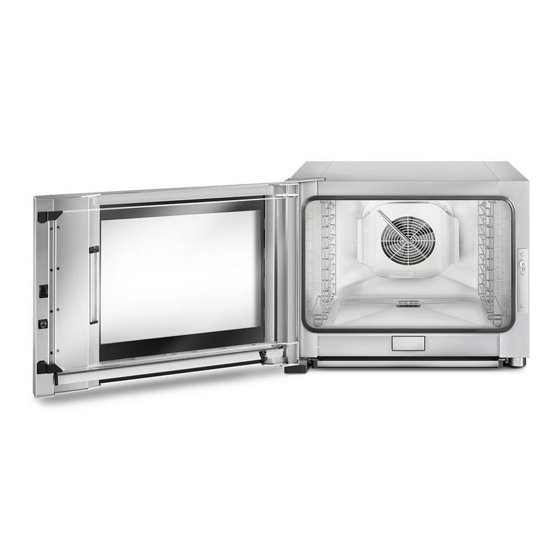 Аппарат оснащен цветным сенсорным TFT экраном. Для изготовления корпуса применяется нержавеющая сталь марки AISI304. Дверца оснащена тройной системой остекления.