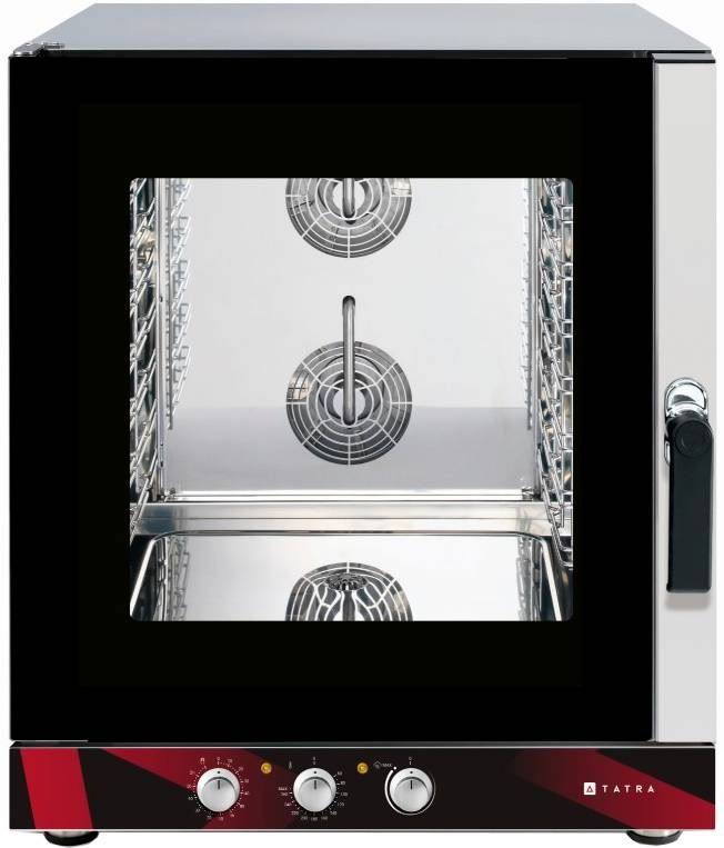 Пароконвектомат Tatra TPI 07 M.V— предназначен для использования на предприятиях общественного питания для приготовления различных блюд с применением режимов сочетания конвекции и пара. Фактически пароконвектомат может заменить собой несколько типов теплового оборудования, таких как конвекционная печь, жарочный шкаф, пароварка, плита и сковорода.