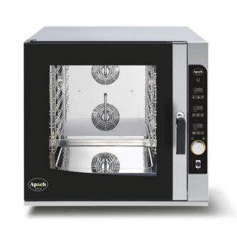 Корпус пароконвектомата имеет прямоугольные формы и компактные габариты. В него встроена нержавеющая рабочая камера со скругленными углами. Камера оснащена инжектором для парообразования, вентиляторами с реверсом для конвекции воздуха, нагревательными элементами. Для размещения гастроемкостей GN 1/1 предназначены 4 пары направляющих.