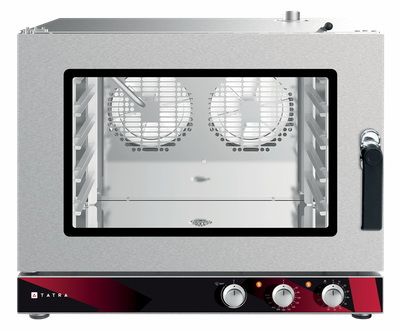 Пароконвектомат Tatra TC05M1L— предназначен для использования на предприятиях общественного питания для приготовления различных блюд с применением режимов сочетания конвекции и пара. Фактически пароконвектомат может заменить собой несколько типов теплового оборудования, таких как конвекционная печь, жарочный шкаф, пароварка, плита и сковорода.