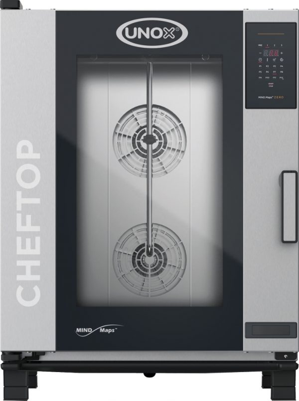UNOX XEVC-1011-EZRM представляет собой профессиональный электрический пароконвектомат. Модель входит в линейку ChefTop Mind Maps Zero. Она отлично подходит для оснащения пекарен, кондитерских, ресторанов и других заведений. Модель отличается повышенной функциональностью. Память аппарата рассчитана на 12 встроенных программ и 99 пользовательских, каждая из них может включать до 3 шагов.