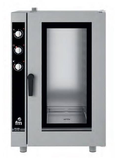 ПароконвектоматFM RXB-610имеет достаточную вместительность, подходит для использования в крупных и средних заведениях питания. В нём нет электронных систем, что определяет его высокую надёжность. Устанавливается настольно, не занимает много места, при этом характеризуется высокой производительностью.