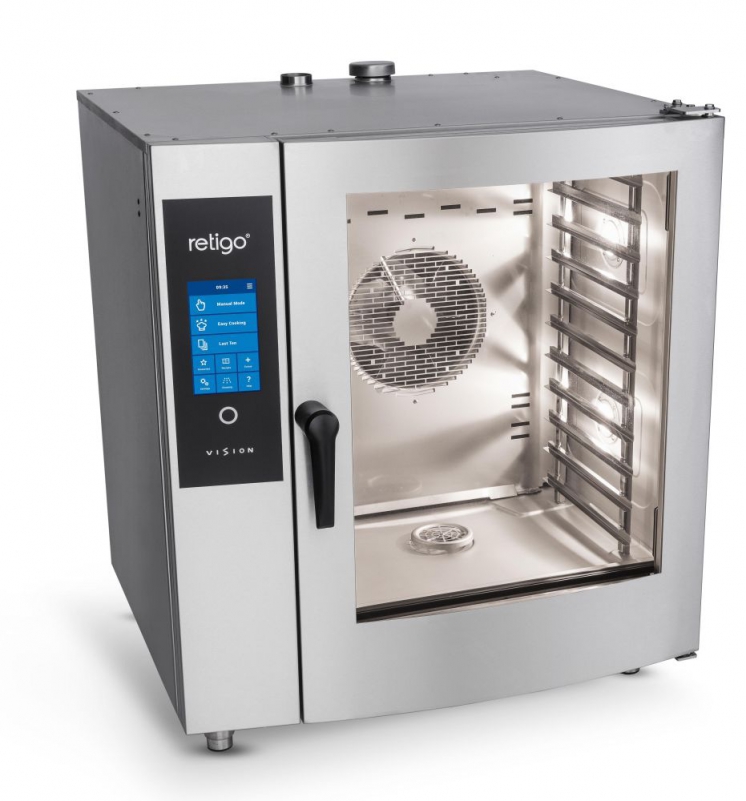 Пароконвектомат Retigo B1011I Vision II – европейское термооборудование с множеством функций и программ для достижения идеального результат готовки и облегчения процесса приготовления. Оснащено системой контроля процесса и самодиагностикой всех систем и функций.
